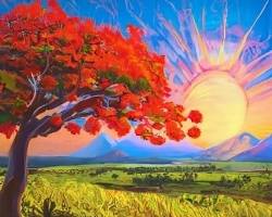 En esta pintura, Morel captura la belleza y la fuerza de la naturaleza dominicana. Los colores intensos y las pinceladas enérgicas crean una sensación de movimiento y vitalidad. Al mismo tiempo, la figura solitaria en primer plano sugiere una profunda reflexión sobre la condición humana.